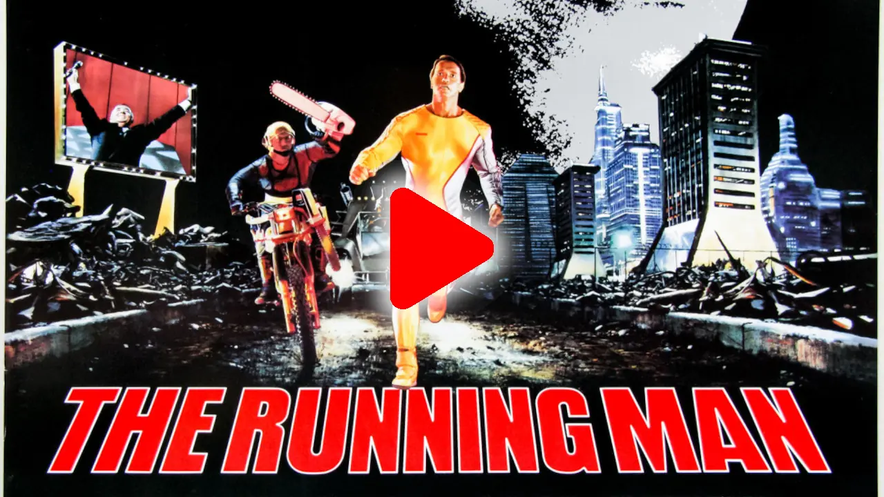 Filme de ação distópico americano de 1987, dirigido por Paul Michael Glaser e estrelado por Arnold Schwarzenegger. A história mostra um futuro distópico entre 2017 e 2019, em que os Estados Unidos se tornaram um estado policial totalitário após um colapso econômico global. O governo controla a população através de propaganda e censura, e o programa de TV mais popular, *The Running Man*, é uma ferramenta de manipulação. Nele, criminosos condenados, chamados de “runners”, tentam sobreviver a assassinos profissionais, os “stalkers”, para ganhar liberdade.